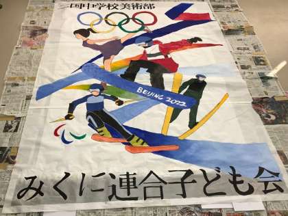 本校の美術部は、新年凧揚げ大会用の北京オリンピックの図案を作成しました。しかし、今年も凧揚げ大会は中止になり、淀川河川敷で大空に揚げることはできませんでした。