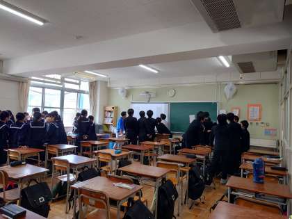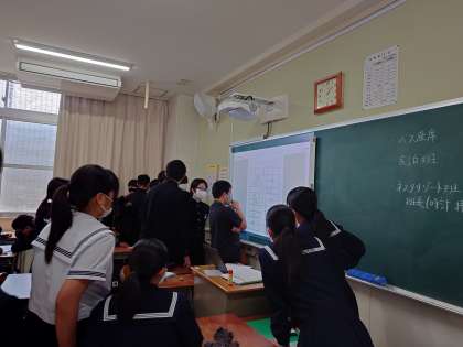 今日は各クラスで「バスの座席決め」や「活動班のメンバー決め」などをしました。中学校生活で最大の行事です。みんなで力を合わせて!!