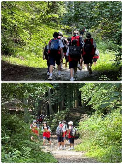 昼食を食べたら次はフィールドワークです。 山道を一生懸命登っています!