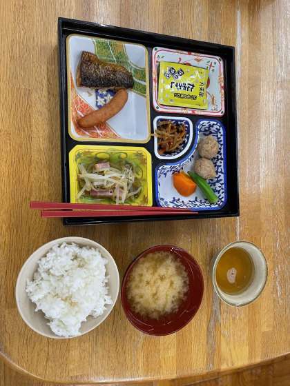 1年一泊移住2日目の朝食です。 昨日の夕食と同じく4クラスが交代で食べます。