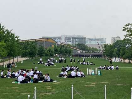 てんしばでお弁当です。 何とか天気が持って芝生のうえでおいしくいただきました。