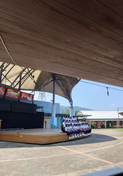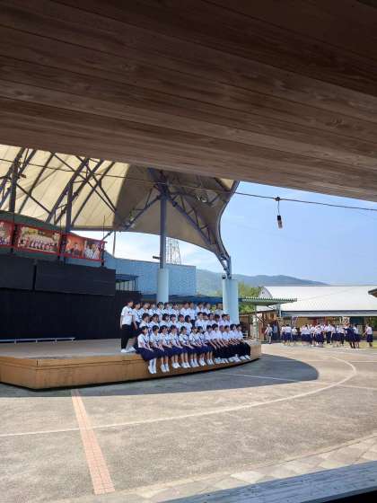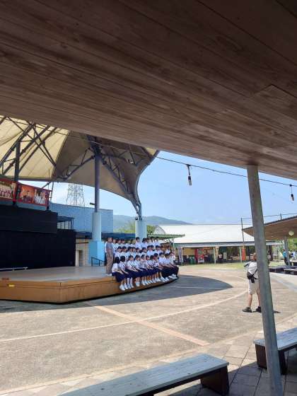 吉野川ハイウェイオアシスに着きました。クラス写真を撮ったら、お弁当です。