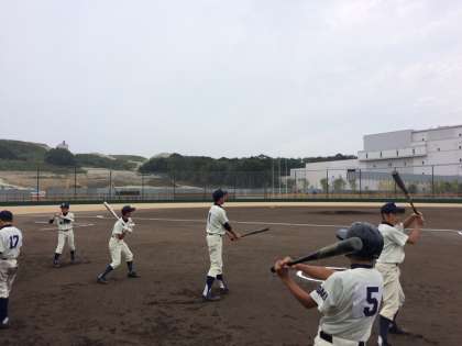 4日(日)の2回戦、相手は三島地区の天王中学校。0−0で迎えた6回、4番バッターのタイムリーヒットで先制、そのまま逃げ切り見事勝利しました。