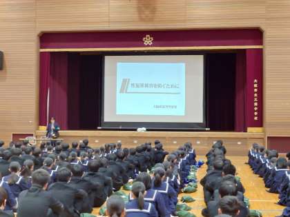 3年生を対象として淀川警察署生活安全課防犯係の方に《性犯罪被害やDV(デートDV)被害》などから自身を守るための方法などについて、講話をしていただきました。