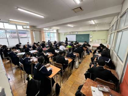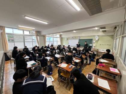 学級にて担任の先生から