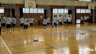 男子体育は体育館にて