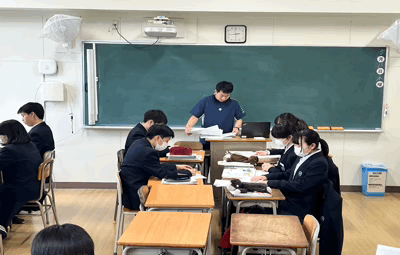 学級にて テスト前プリント学習などに 班ごとに協力しながら取り組んでいます。