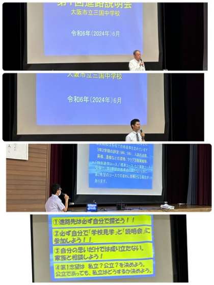今回は大まかな受験までの流れを説明しました。欠席された保護者の方は本日の資料である『進路のしおり』をお子さまを通じて、お渡ししますので、必ずご一読ください。