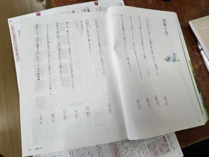 教室ではそれぞれの課題と短歌の暗唱テストに向けて学習しています。