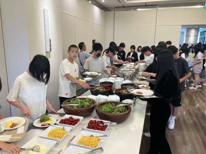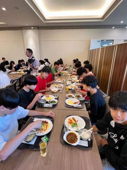 朝食バイキング 前半組スタートしてます。