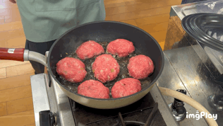 ハンバーグステーキ しっかり焼いて蒸し焼きにします。