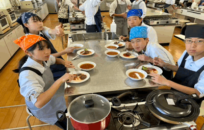自分たちで調理したお料理