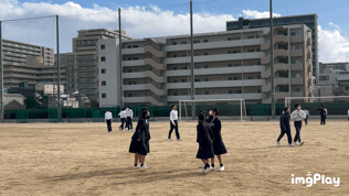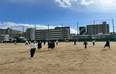 グランドにて元気に走り回っています。