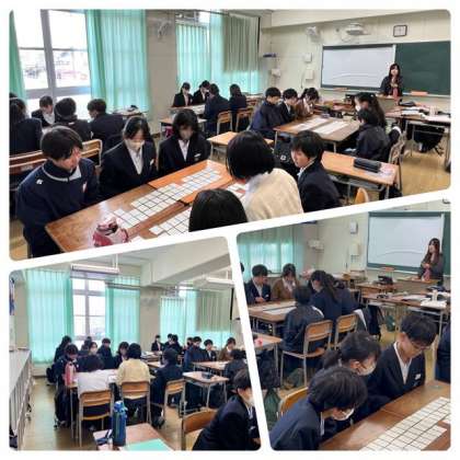 百人一首かるた取りをしています。