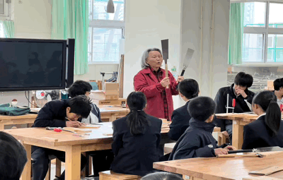 安全第一に 木材加工の実習に入ります。 ノコギリの使い方の説明を受けてます。