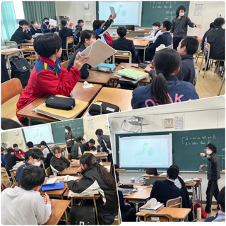 グループに分かれて 英語での質問を聞き取って回答しています。