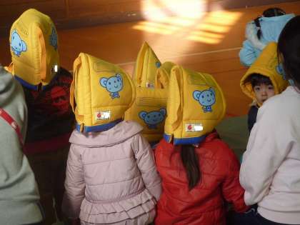 みくにひじり幼稚園の避難の様子と、中学生防災リーダーの活躍