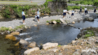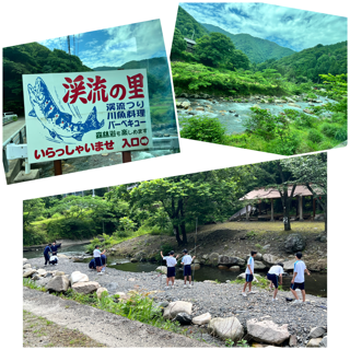 ◯渓流釣り、魚さばき体験 イクラをエサに 渓流釣りを楽しんでいます。