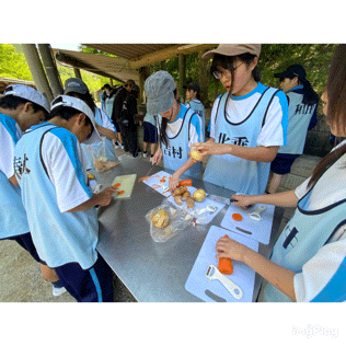 野菜の皮をむいて、食べやすい大きさに切っています。