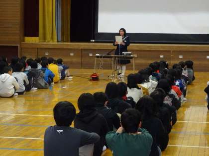中学校に入学するに当たり、わからないことや不安を少しでも解消するために、中学校にきて、生徒会役員から学校説明をしました。内容は授業について、行事について、給食について、部活動についてなど様々でした。また、各小学生から「皆さんよろしくお願いします」と各学校紹介もありました。来年度からの中学校生活がより楽しいものになるような会でした。