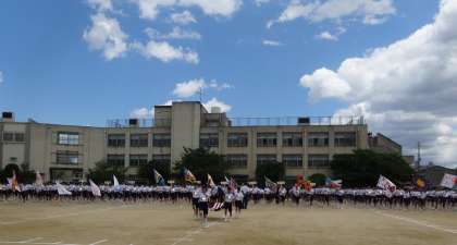 前夜の嵐で運動場の状態が心配でしたが、朝から先生や生徒が整備して無事行うことができました。開閉会式・競技の入退場・競技の流れ等係生徒も動きを確認しながら予行を終えました。6月6日(火)の体育大会本番では、保護者の皆さんの前で一生懸命走ったり跳んだり、踊ったりする姿を見せてくれると思います。