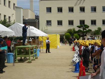 上段:三国小学校の土曜授業に合わせて地域防災訓練が行われました。