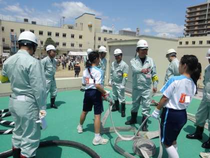 下段:筒先の使い方やホースのつなぎ方も習いました。