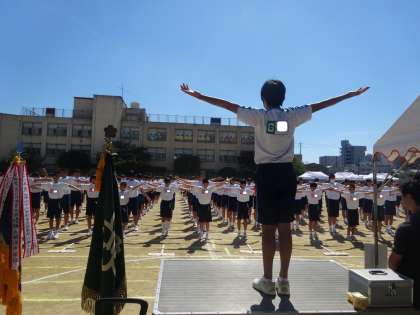暑すぎず適度の風もあり、いい体育大会日和でした。生徒全員がそれぞれの競技や係で一生懸命頑張る姿が見られ、すばらしい体育大会でした。召集や係の動きがとてもスムーズで、競技も予定の時間よりもどんどん早くなりました。