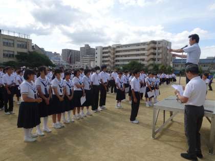 続いて先週行われた体育大会の賞状が渡されました。各学年3位までのクラスと、新記録を作った生徒の表彰がありました。来年はどれだけ新記録が生まれるでしょうか、また、楽しみですね。
