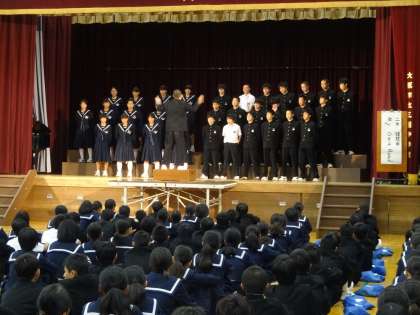 5時間目2年生、6時間目1年生が体育館で、合唱コンクールのリハーサルをしました。課題曲・自由曲の一部だけ歌って、入退場の流れと動きの確認をしました。学年全員が見守る前で歌って緊張しましたが、24日(火)の合唱コンクール本番に向けていい練習になりました。