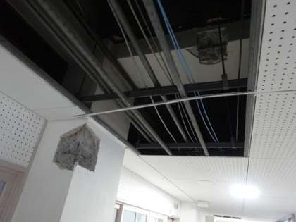 東館等のコンクリート強度調査、鉄筋腐食調査が、今日から学校の休みの日を使って、行われています。今日は、調査する地点のコンクリートをとりました。明日からは、とった跡を埋めて、塗装をしたりします。