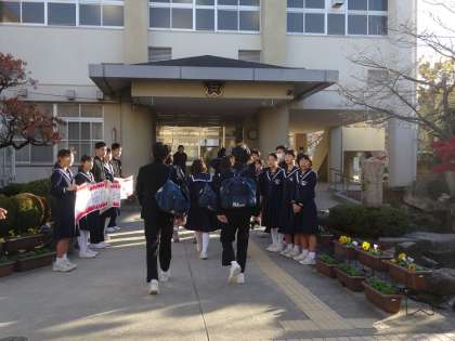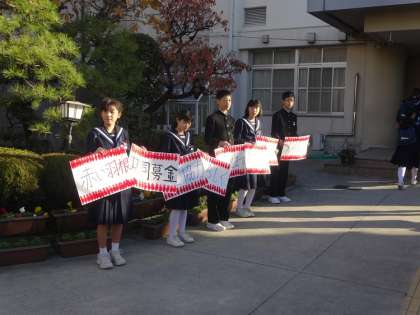 「師走」となり、今年最後の月になりました。朝の正門では生徒会があいさつ運動をしています。今日は、来週6日(水)〜8日(金)に行われる「赤い羽根歳末募金」のPRをしていました。ご協力をお願いします。