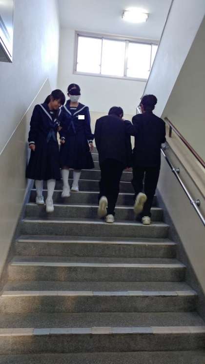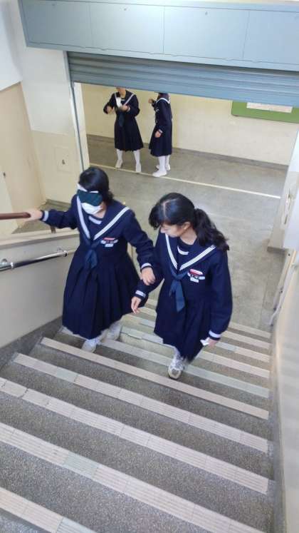 12/6 「障がい者週間」取組 1年生「アイマスク体験」