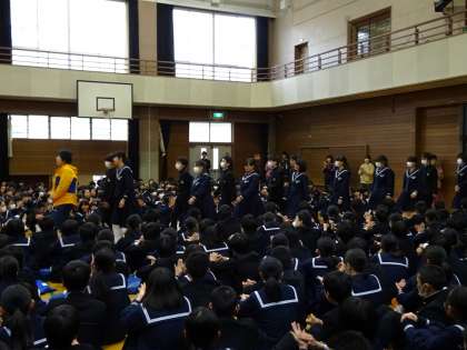 続いて3年生から在校生へ「With you smile」のきれいな合唱が在校生にプレゼントされました。