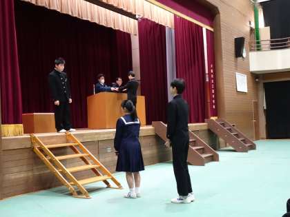 今日は、明日の卒業式に向けて在校生も入って卒業式の予行をしました。流れを確認し、明日に向けての話もありました。明日本番で、自分自身ができることをきっちりやって、中学校生活の有終の美を飾ってください。