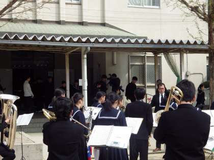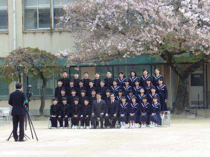 吹奏楽部の演奏と拍手で式場を出た新入生は、学級写真を撮ったり、教科書をもらったりした後、各学級で学級担任の先生と過ごし、中学校生活の初日を終えました。