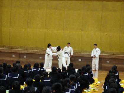 1年生の前で、2・3年生が実技を交えて、それぞれの部の紹介をしました。
