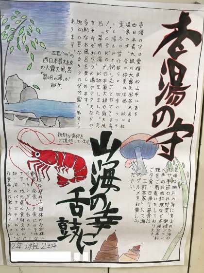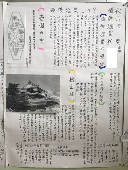 昨日、3年の先生が本館に修学旅行の壁新聞を掲示しました。2年生の時に、自分たちで調べてまとめてきたものです。