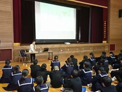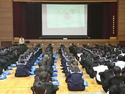 73年前、広島で起こった悲惨な現実を、実際の被爆者の体験をもとにお話しくださいました。再来週、修学旅行で広島を訪れる3年生にとって、貴重なお話を聞くまたとない機会となりました。真剣な表情で最後までしっかりと耳を傾けていました。