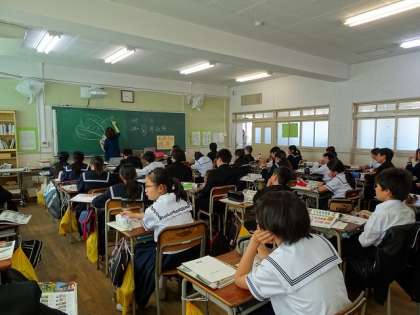 生徒たちは、緊張した様子もなく、いつものように授業を受けていました。どの学年も学級も、授業態度よく静かに授業に集中していました。