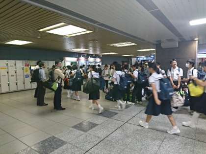 集合時間7時20分までには、参加生徒は新大阪駅の集合場所に集まりました。