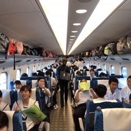 出発式後、3年生たちは新幹線に乗車し広島へ向かいました。