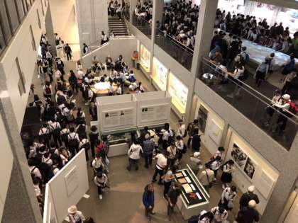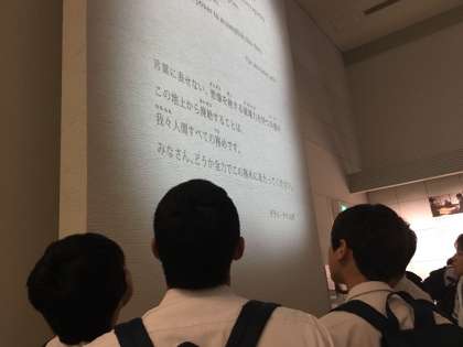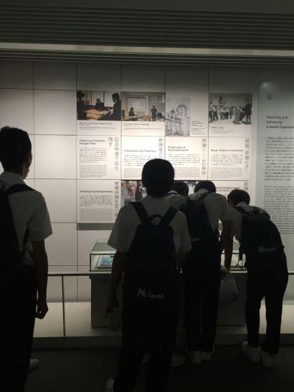平和記念公園内にある、広島平和記念資料館を班別行動し、平和学習を行っています。