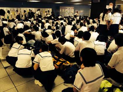 6月9日午前7時10分新大阪駅に集合していよいよ修学旅行に出発です。本年度から目的地は九州阿蘇方面です。参加者は生徒251人、引率は校長先生始め教員15人です。8時11分発の「さくら」で、九州方面に向かいます。PTA役員や保護者の方に見送られて全員無事に出発しました。