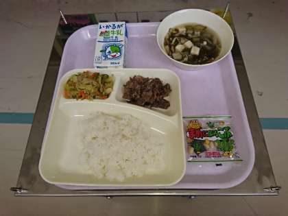 今日の献立に「もずくとオクラのとろり汁」がでました。もずく、オクラとも、カロリーが低くダイエット食に適しています。また、カルシウムも豊富に含んでいますので、お魚や牛乳などと一緒で成長期である中学生にとっては大切な食材です。残さずにしっかり食べましょう。