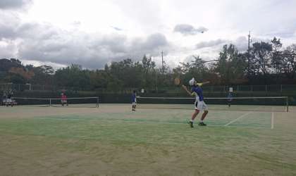 10月22、23日に男子硬式テニス大阪中学校総合体育大会テニス中央大会が行われました。大阪市を個人戦はベスト8以上、団体戦はベスト4以上でなければこの大会には出場できません。初日はダブルス1ペアが出場し、初戦を完璧なテニスで快勝しました!2回戦は第1シードと当たり、惜しくも敗退となりましたが大阪府ベスト16に残ることができました。団体戦は緊張感のある引き締まった試合、そして大接戦となりました。マッチポイントを握りながら惜しくも破れた試合もありました。最後まであきらめることなく一生懸命がんばってくれましたが、2勝3敗で初戦で残念ながら敗退となりました。随所でナイスプレーもありましたし、府大会への出場はすごく貴重な経験になったと思います。