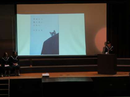 4名の生徒より、推薦する図書の紹介がありました。生徒の一生懸命な語りが伝わり一度読んでみたいという思いになりました。