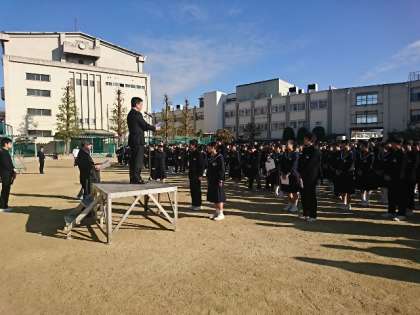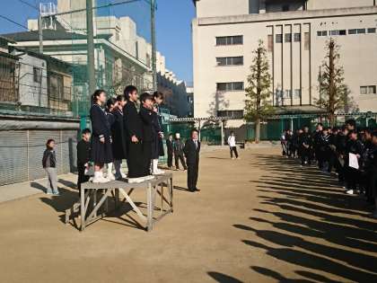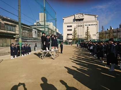 生徒会からは、今まで三国中を支えてくれた旧の役員と、これから新しく三国中学校を支えてくれる新役員からあいさつがありました。