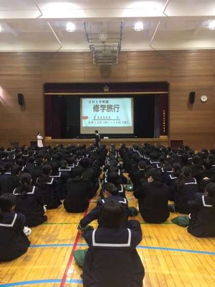 今日の6時間目、6月に行われる修学旅行の行程の説明を行いました。どこに行くのかなど、わくわくしながら生徒たちは聞いていました。