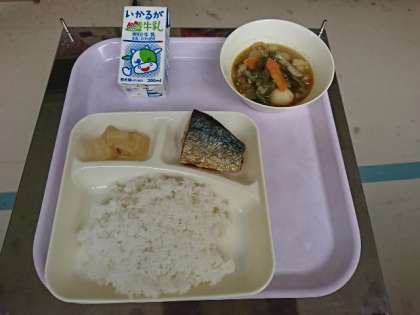 中学校給食では、1年間、和洋中といろいろな料理の献立が出てきました。今日の献立は、「さばの塩焼き」他2品の和食メニューでした。